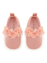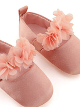 Our signature Blossom ballerina is adorned with a satin upper and gorgeous handmade flowers. A special anti skid material is used for the soles to ensure safe first steps for your precious baby girl! It’s fun, it’s elegant and it’s glamorous! Dress up your little girl in these pretty ballerinas for every special occasion!