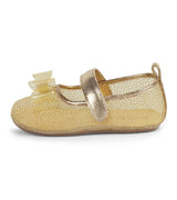 This stunning gold ballerina features a shimmering net design along with an adorable bow. Perfect for parties or special occasions, it’s a must-have for your little one’s wardrobe. Shine bright with the Gold Sparkle Ballerina from Baby Doe!