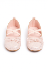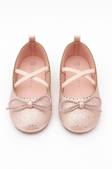 Dusted in soft glitter and finished with a delicate bow, these shoes are the perfect blend of sparkle and sweetness. The criss-cross elastic straps keep little feet snug for twirls, skips, and everything in between.