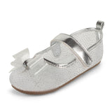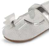 This stunning Silver ballerina features a shimmering net design along with an adorable bow. Perfect for parties or special occasions, it’s a must-have for your little one’s wardrobe. Shine bright with the Silver Sparkle Ballerina from Baby Doe!