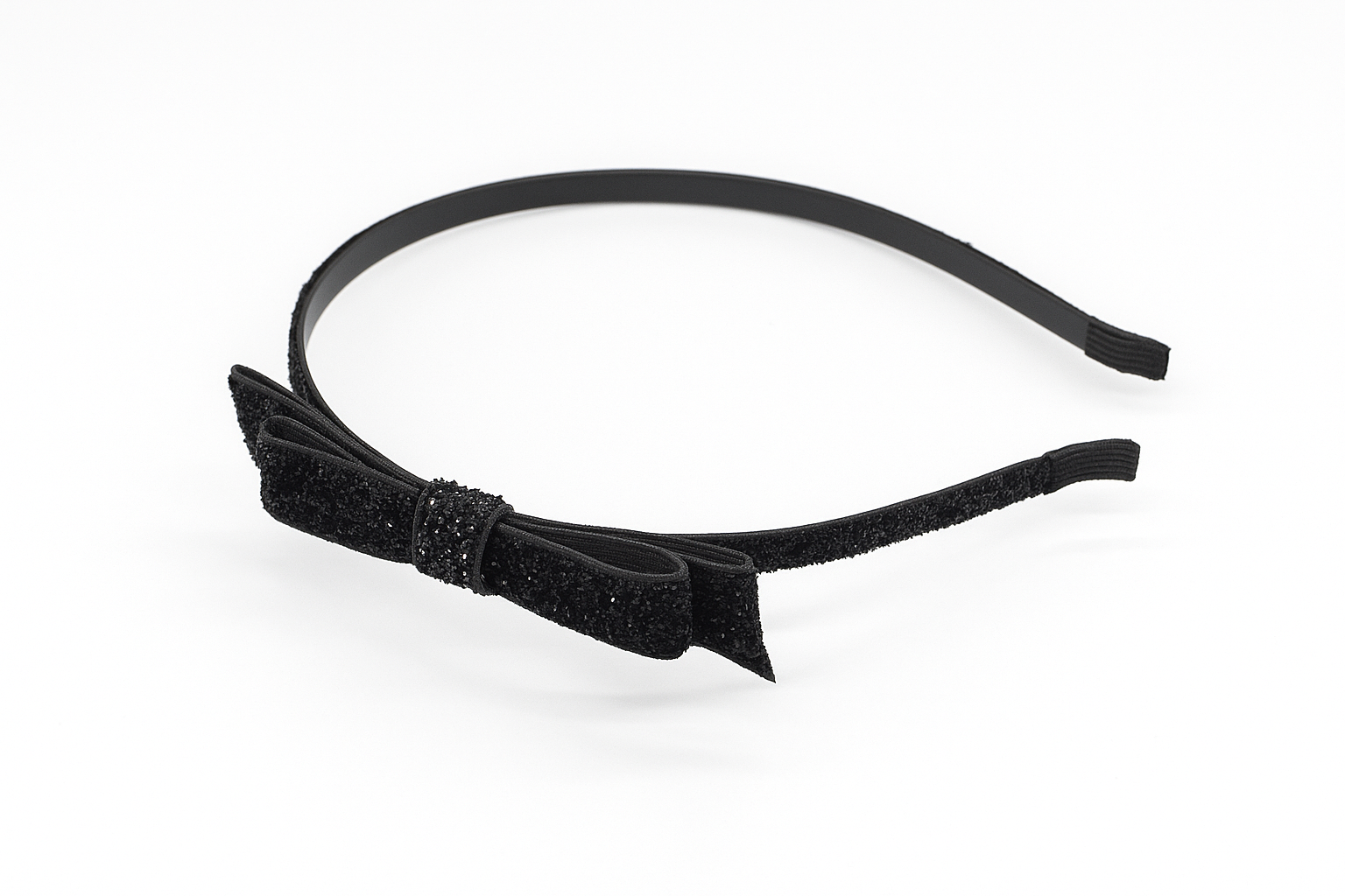Black glitter hair band that add a glamourous  touch to any hairstyle with a secure, lightweight hold.