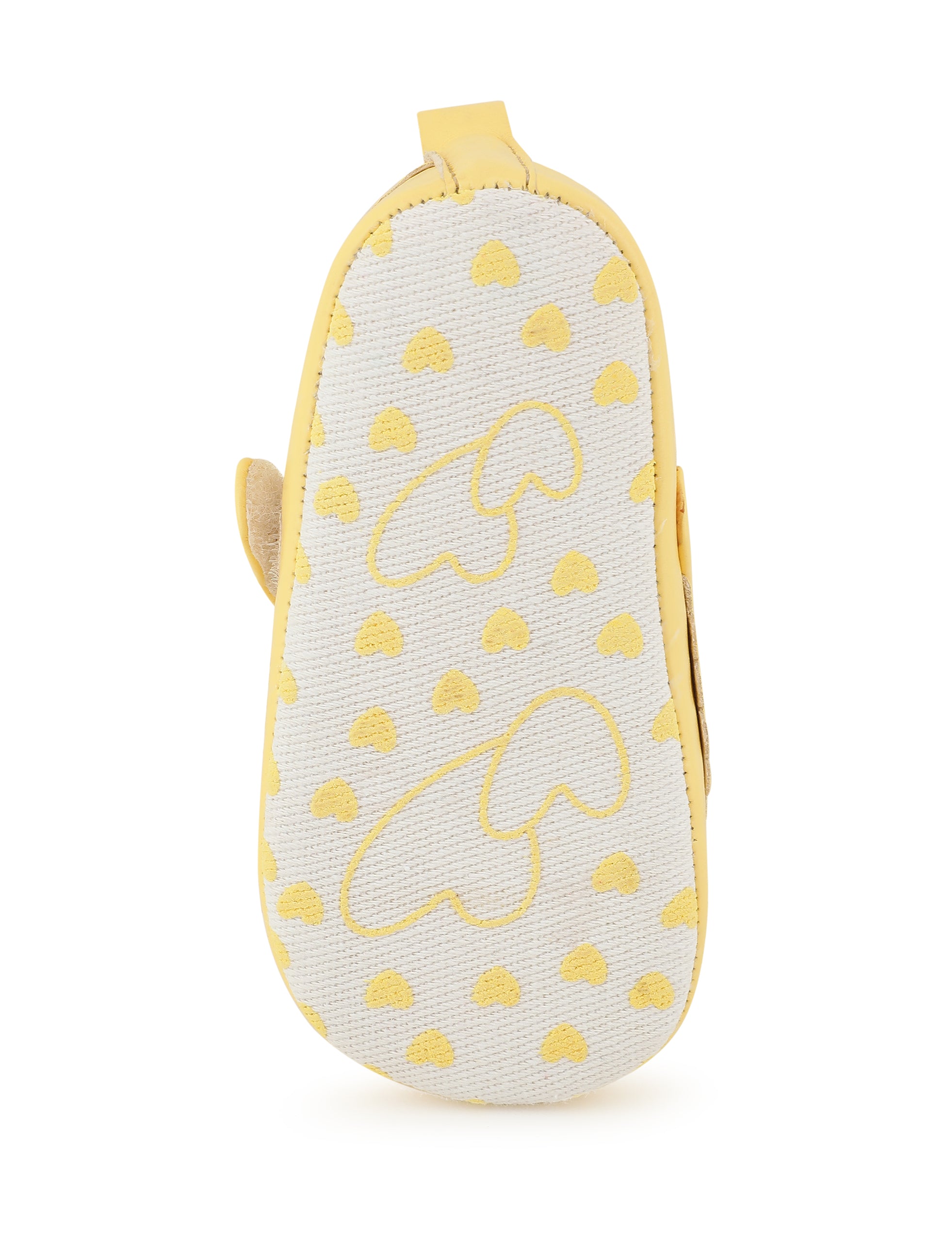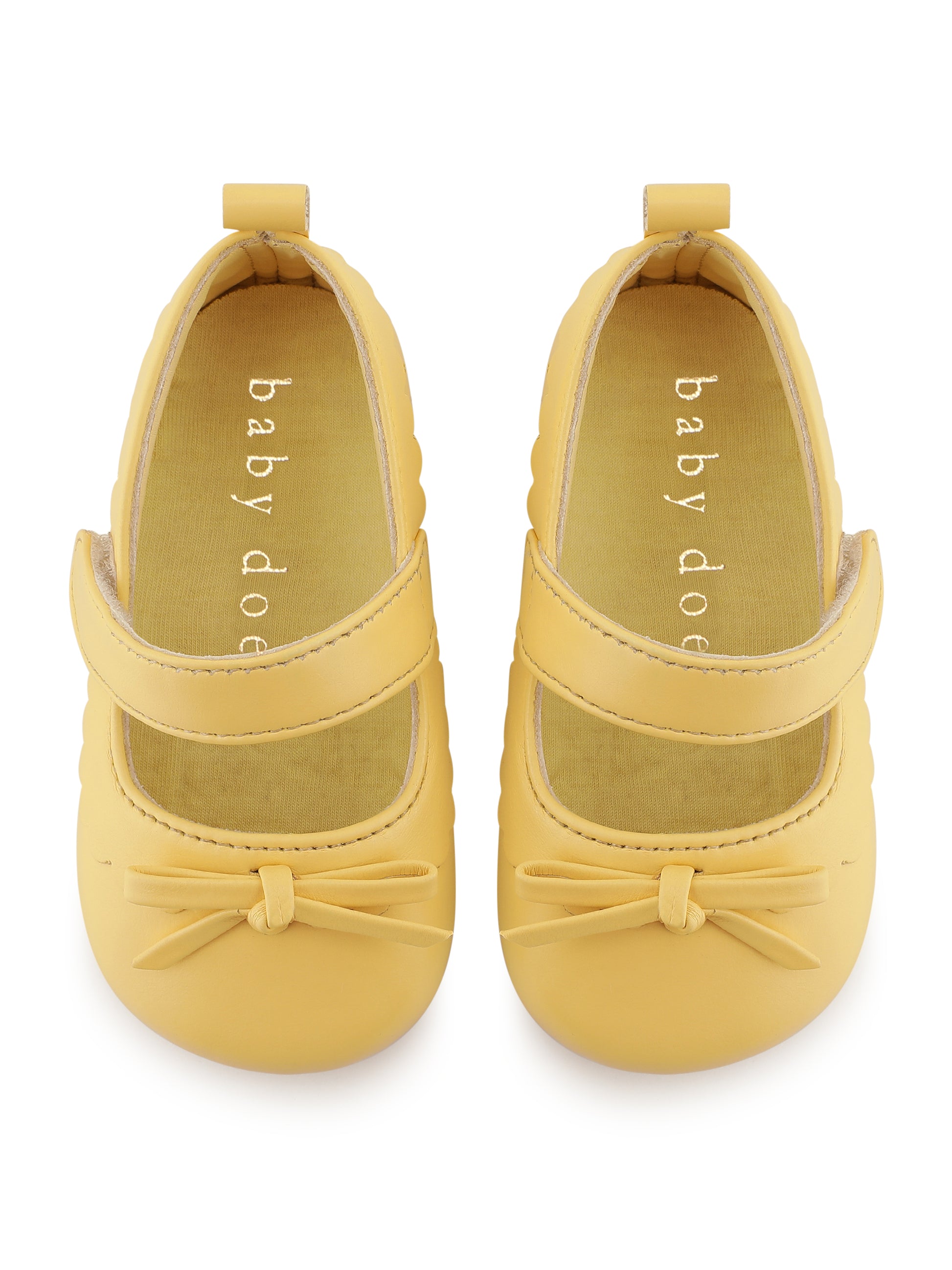 The perfect yellow for this summer! The Busy Bee Ballerina features a wide toe box that allows those tiny toes to wiggle freely while the soft soles provide a comfortable fit. For added safety, there is a specially designed rubber print with hearts that helps make it anti skid for those safe first steps! Make your little girl look bright and pretty in these sweet little ballerinas!