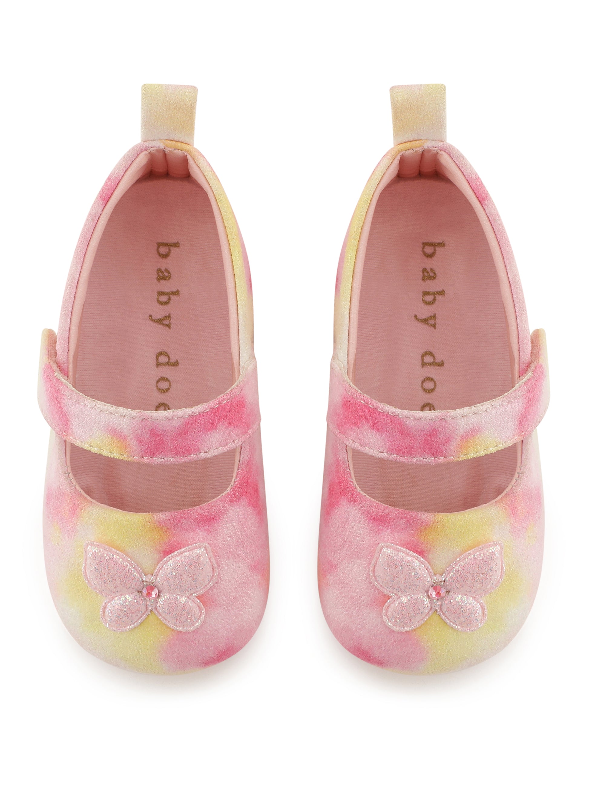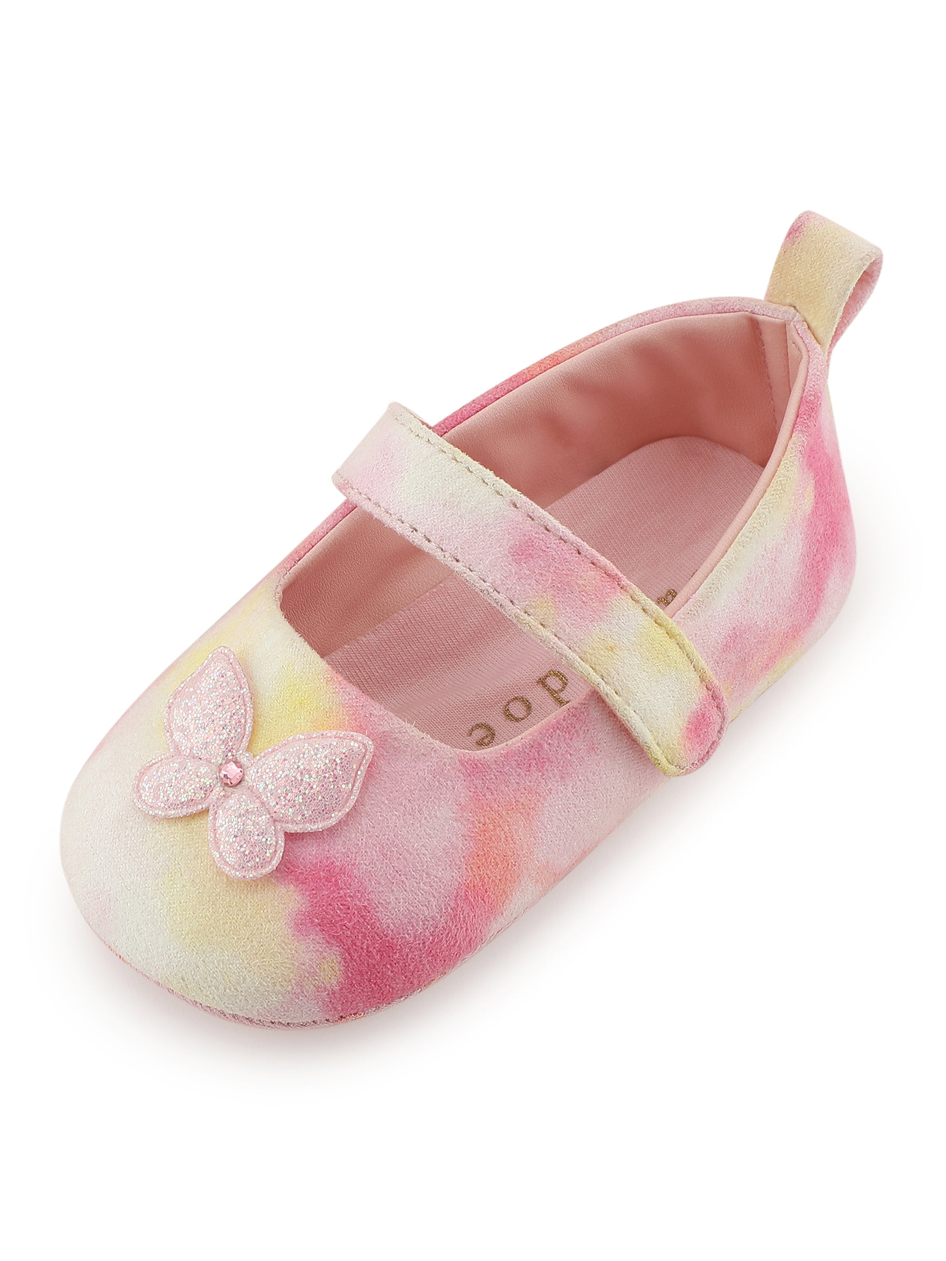 Colour Me Ballerina by Baby Doe is a perfect prewalker for your little baby girl. Made with a suede upper and a specially designed anti skid heart printed sole for extra safety. It has unique tye dye print and cutest little butterfly detail that only adds a touch of fun for your litte diva's first steps!