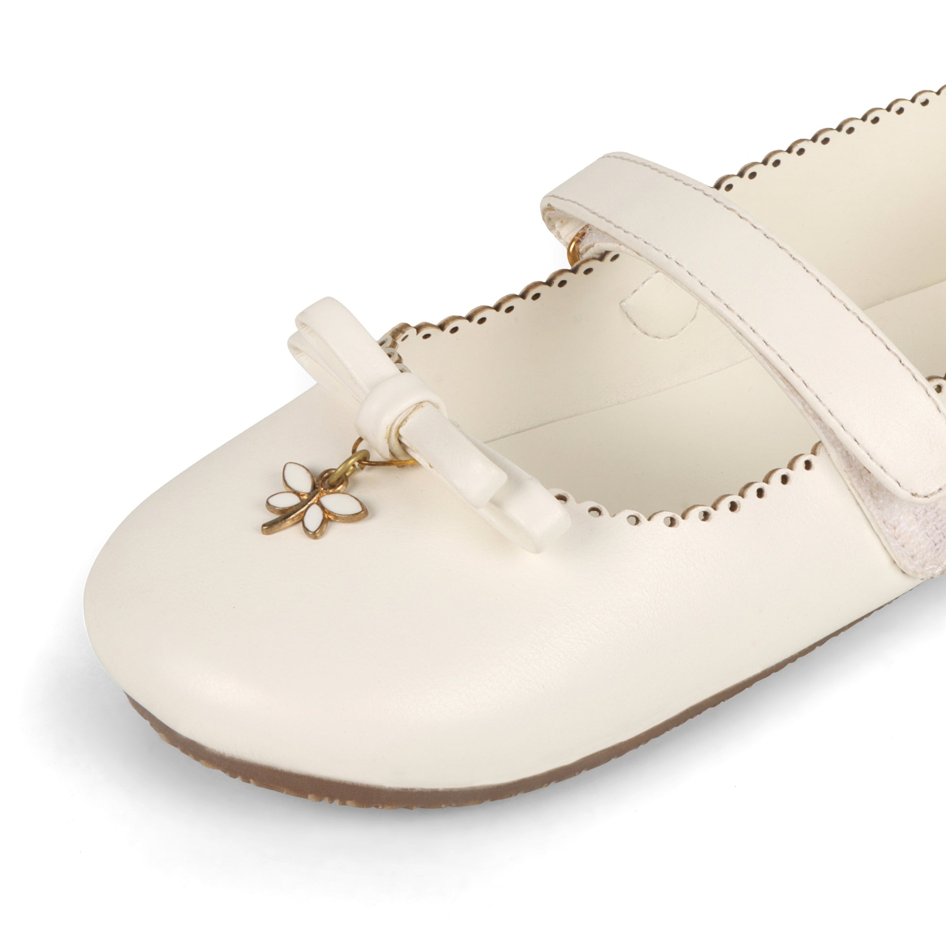 This beautiful white pair features an adorable butterfly charm! Perfect for toddlers, this ballerina is sure to become an instant favorite in any wardrobe. Let your little one twirl away in style with Butterfly Kisses Ballerina from Baby Doe!