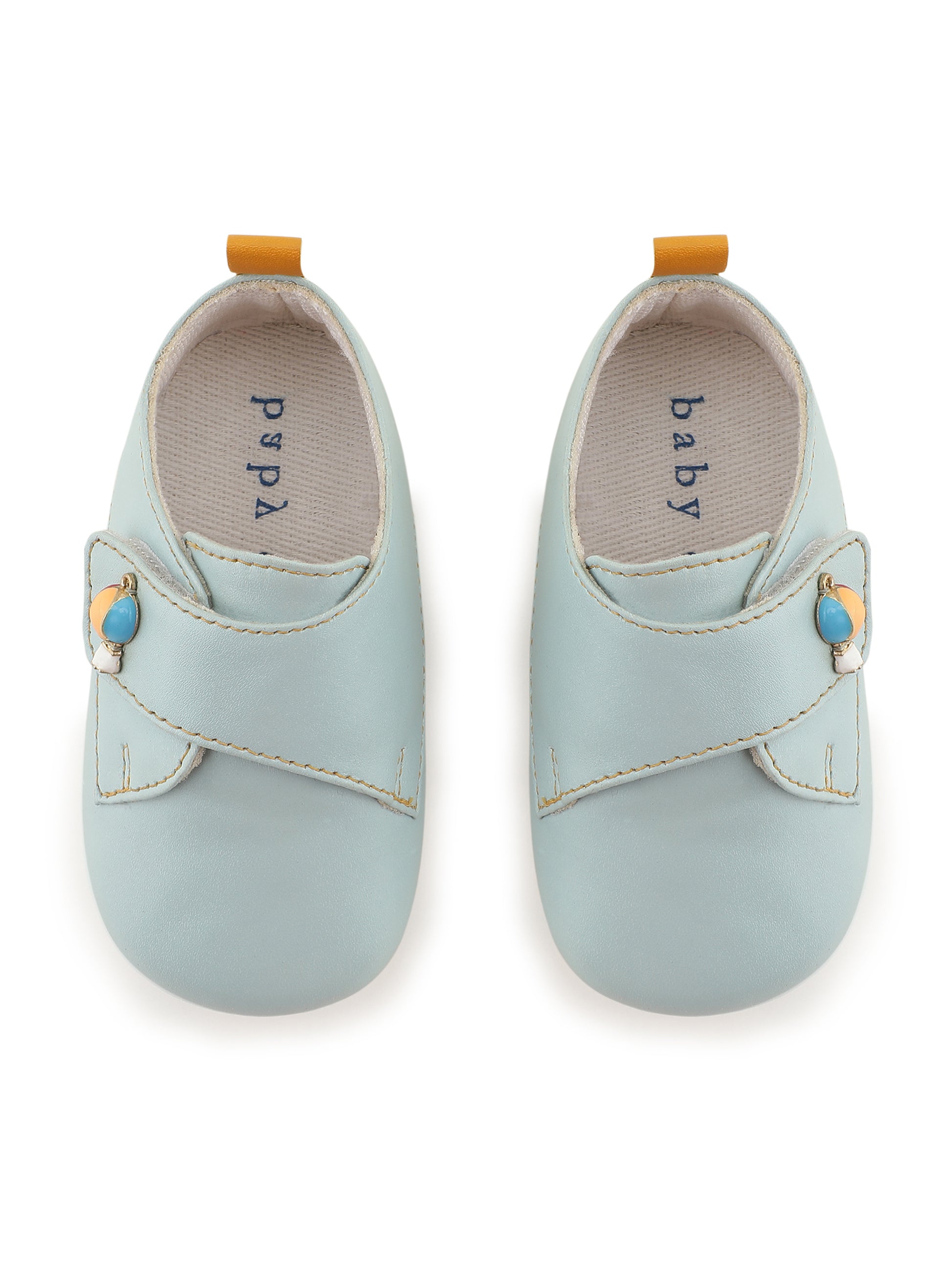 This stylish prewalker sneaker is perfect for your little boy. It features a back tab for easy slip on, cushioned insoles for extra comfort, and a wide toe box to let those tiny toes wiggle. The specially designed rubber print with stars makes it anti skid for extra safety. Your baby will look and feel great in this pair. Get ready to watch him fly high in the cutest summery blue shoes!