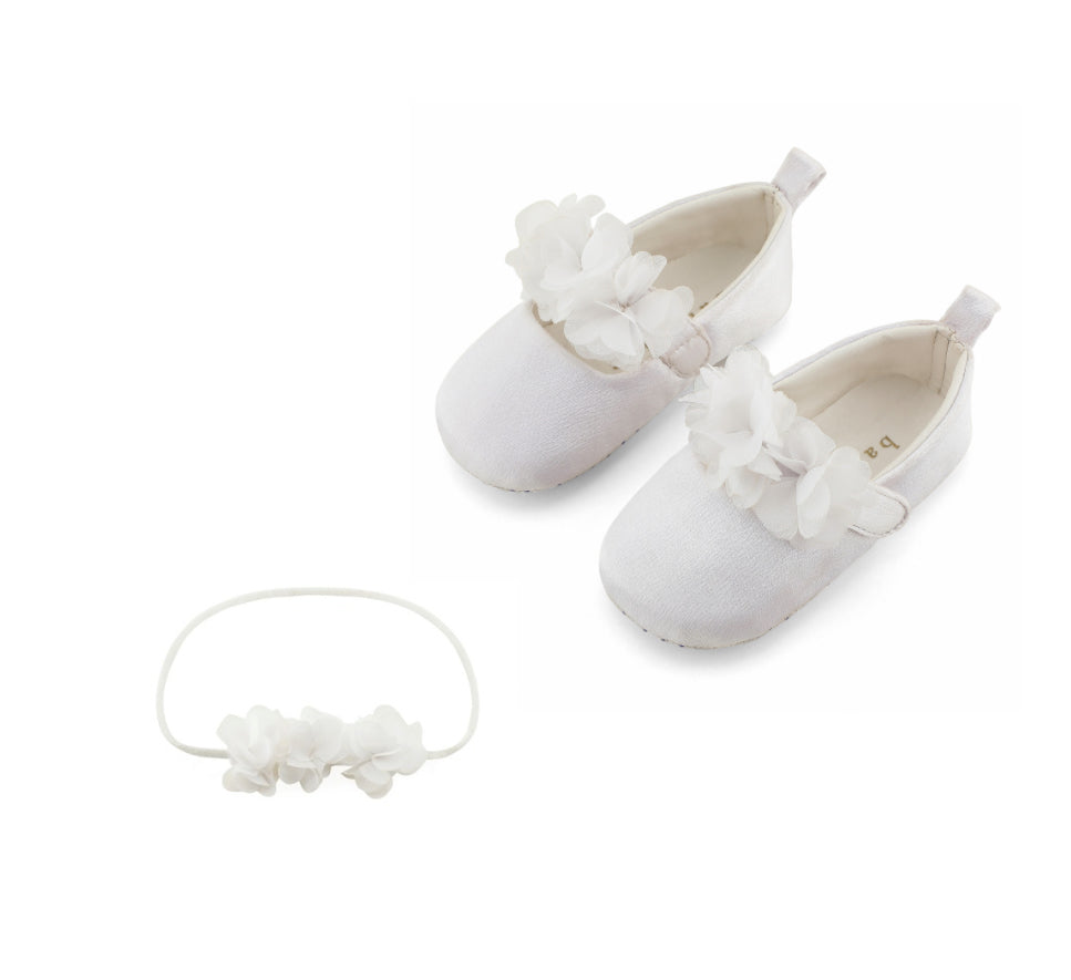The Blossom Prewalker and Blossom Hairband combo offers comfort and style, perfectly paired for a chic, coordinated look.